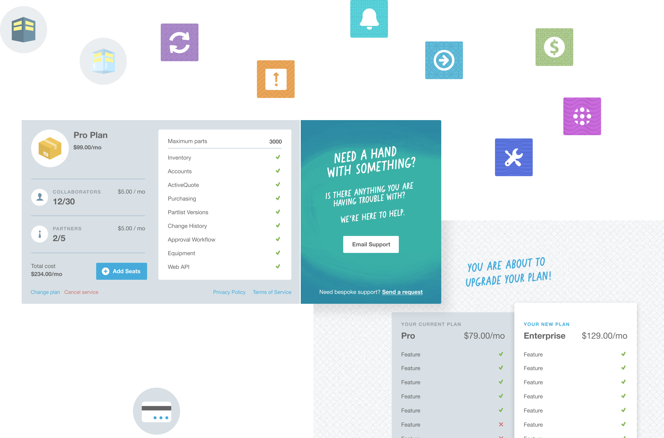 In cases like this it is entirely possible to fall into the trap of overhomogenization of the UI, sometimes to the point of confusing users so much that they lose orientation and can’t figure out quickly which screen they are on. Fortunately we were able to utilize illustrations, and in some cases color-coded iconography in order to make things more visually interesting, and more easily identifiable.