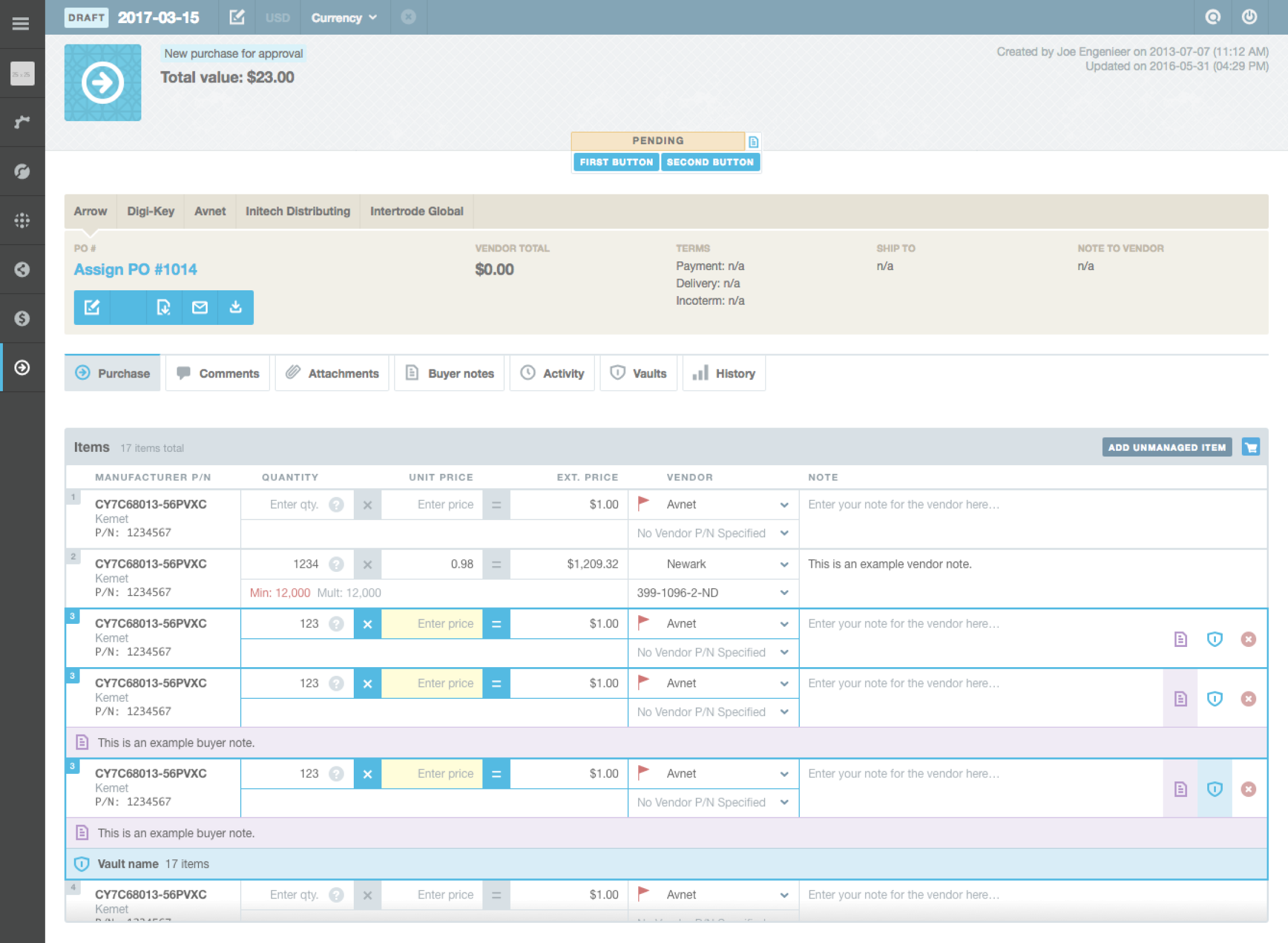 This is an example of our classic front-end deliverable. A high fidelity, functional, static HTML mockup. In this case it’s a demo of Aligni’s bulk part import UI.