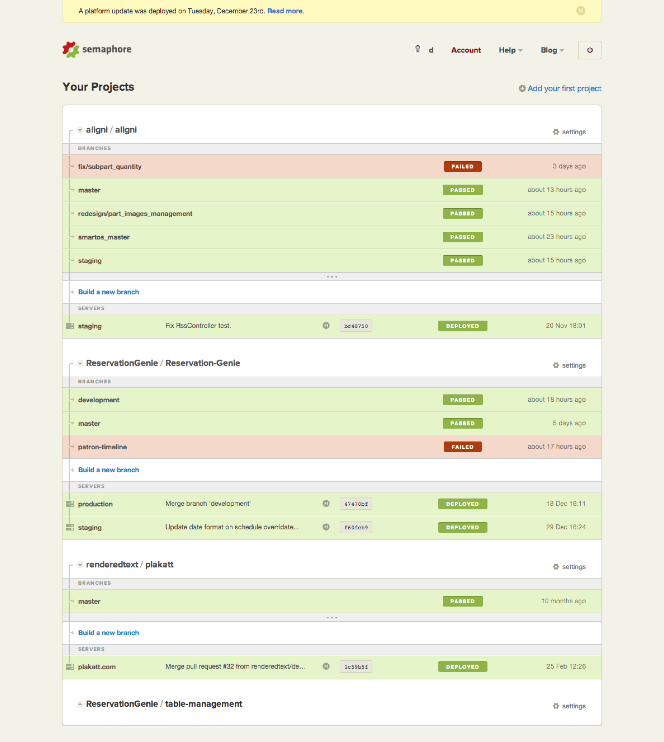 We used a relaxed tone of voice in the app as well as on the website and other communication channels because we wanted Semaphore to be the opposite of old-school, stressful, version-based way of building and releasing software.