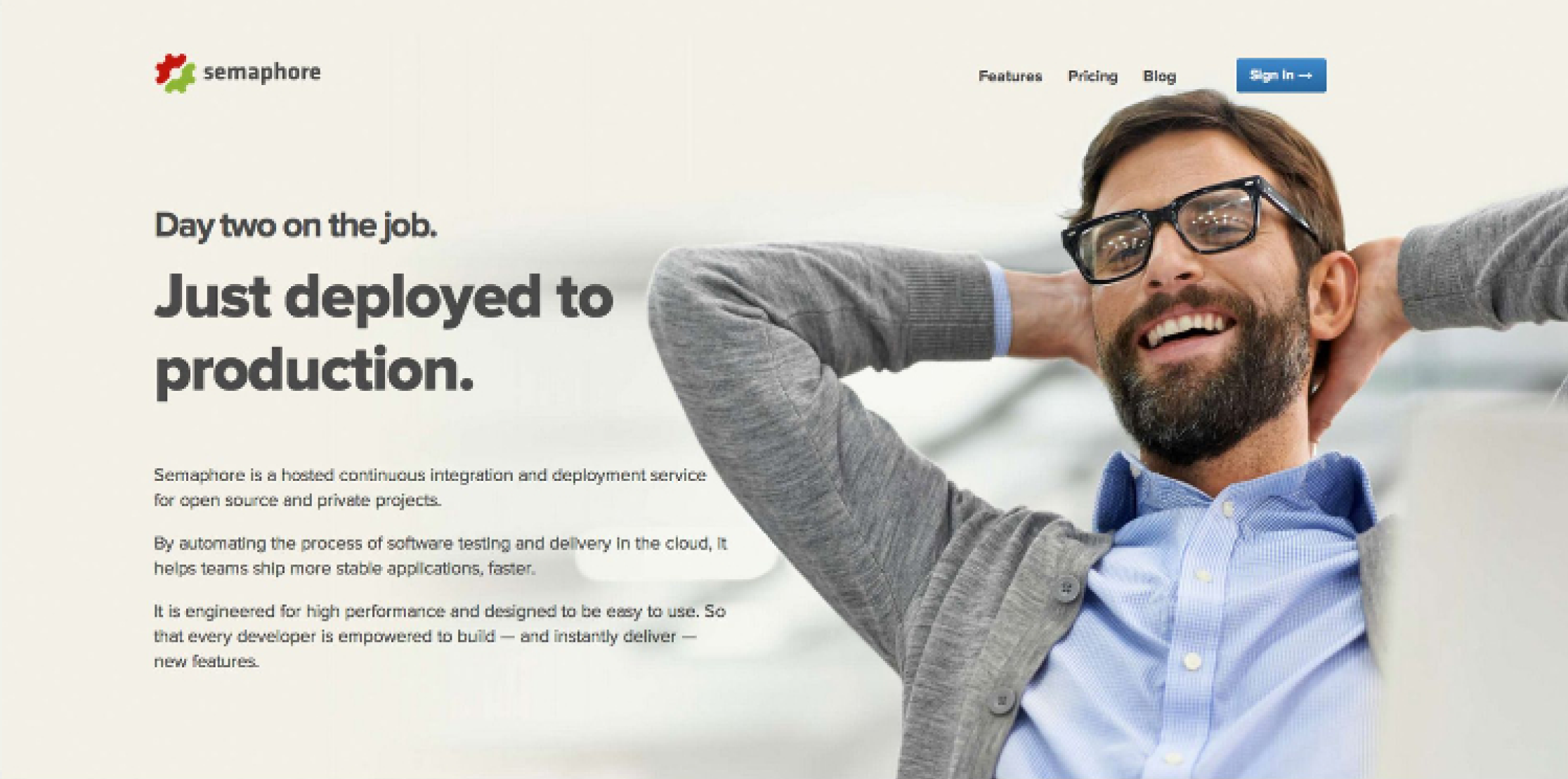 This tone of voice was replicated onto the website as well, where we tried our best to advocate for a new way to develop software, which wasn’t necessarily casual, but gone were the days of accumulating months and months of work into a release, and praying that you’ve covered everything. When you deploy often, that stress is gone.
